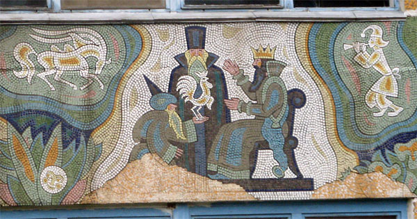 Панно с персонажами сказок - самое интересное и гармоничное. Жаль, что мозаика частично осыпалась, и не ведется